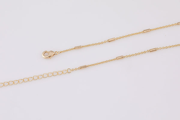 16" 18" Satellite Necklace Gold Plated Anti-Tarnish Gold Necklace Bar Tube Satellite Chain with Extender Perfect for Layering