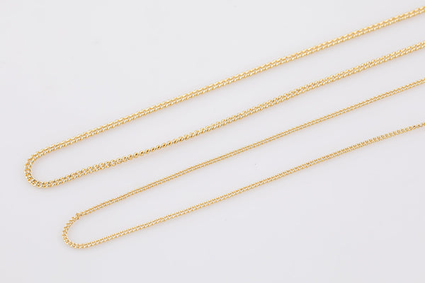 16" Dainty 14k Gold plated Cuban Curb Chain Necklace Chains for Layering - 1mm 1.5mm 16" with extender