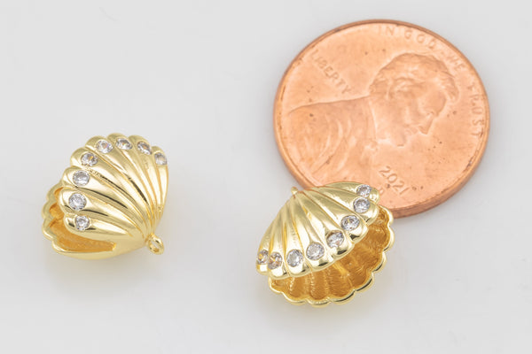 1 pc 18k Clam CZ Charm, Pendant- 11x12mm