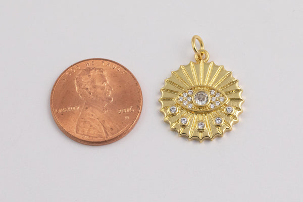 1 pc 18k Gold Coin Evil Eye Charm Diamond CZ Drop Charm Cubic Protector Pendant Tiny Lucky Dainty Necklace - 18mm-