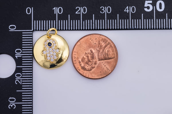 2 pcs 14k Gold Hamsa Hand Charm Diamond CZ 15mm Blue CZ Drop Charm Cubic Protector Pendant Tiny Lucky Dainty Necklace Bracelet- 15mm
