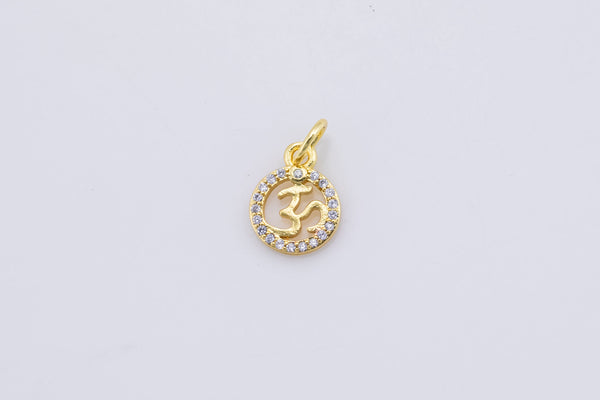 3 pc 18K Gold Spritual Religious Ohm Symbol Medallion Cubic Zirconia Bracelet Charm- 9mm