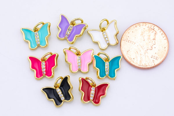 4 pcs Dainty Enamel Charm Butterfly Gold 14k Gold Charm- 12mm