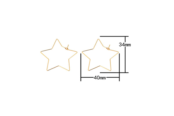 Earring Finding Beading Earring Hoop- High Quality Real Gold Plating, Gunmetal or Brass-Star Shaped-34mm- 2 pairs per order