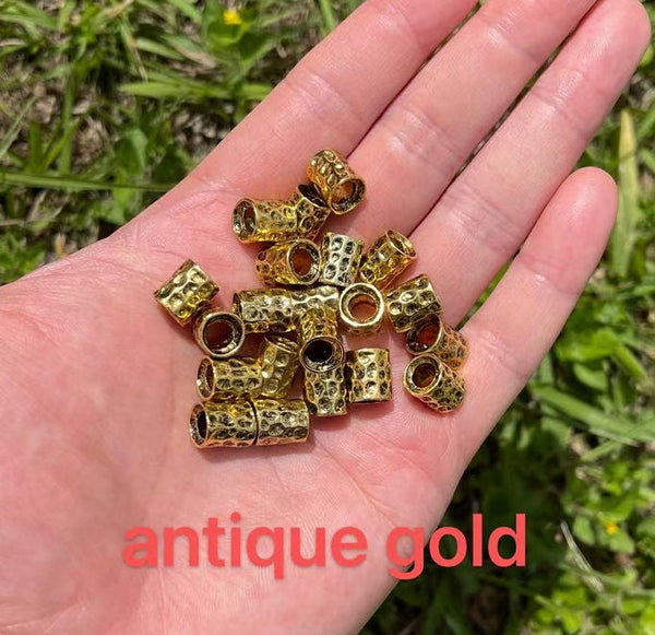 10mm Hammered Barrel Tube Spacer Beads - 3 Colors Gold Silver Gunmetal