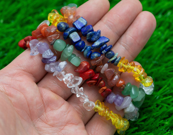 Natural Chakra Mixed Gemstone Stretchy String Bracelet - Lapis Yellow Quartz Green Jade Clear Quartz Carnelian Amethyst Red Coral Bracelet