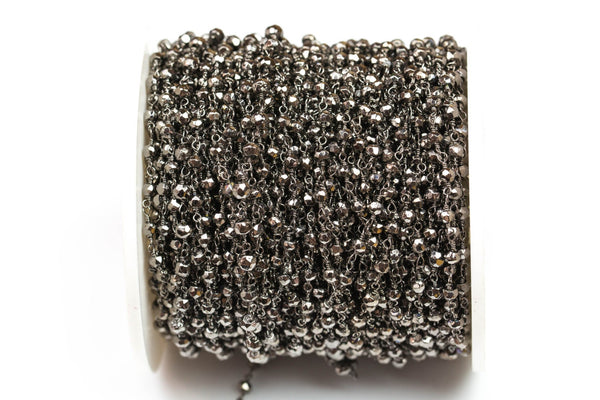 WHOLESALE Gunmetal Pyrite Rosary Chain by the Foot. 3-4mm Gunmetal