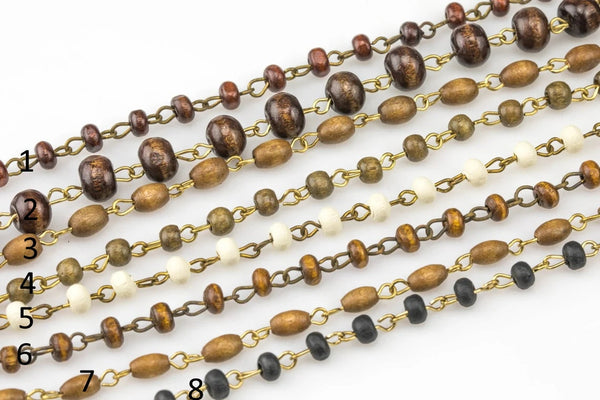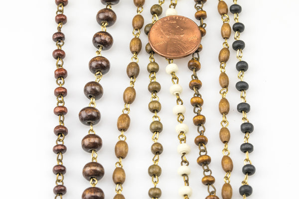 WHOLESALE Wood Rosary Chain GOLD 3-4mm Wood Rosary Chain...wire Open wrapped Sold Brass- 5 yards per order-15 Feet
