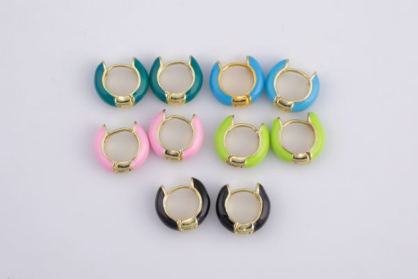 Colorful Enamel Huggie Hoop Enamel Earring - 15mm- 5mm thick Huggies - 1 pair per order