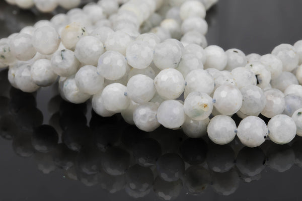 Natural Moonstone Beads Diamond Cut Facets 8mm and 10mm Rainbow Moonstone Gemstone Loose Beads 15.5" - 16" full strands AAA Quality