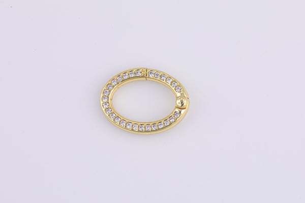 1 pc 13x17mm Oval Round Gold Micro Pave Spring Buckle Metal Snap Clasp Spring gate ring, Trigger Round Ring, Snap Clasp