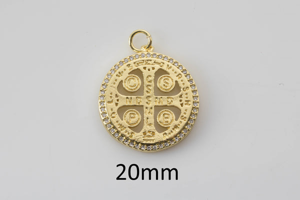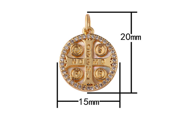 1 pc 15mm 18K Gold Delicate Saint Bendict Benito Cubic Zirconia Bracelet Necklace Pendant Earring Charm Gift for Woman Jewelry Making