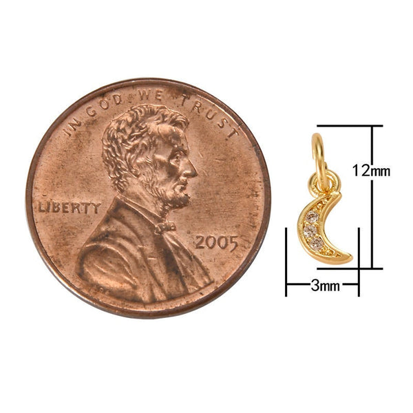 1 pc 18K Gold Mini Moon Cubic Zirconia Bracelet Necklace Pendant Earring Charm Gift for Jewelry Making-3mm