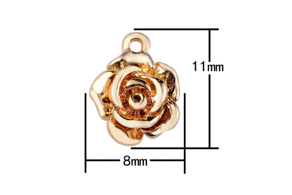 1 pc 8x11mm Dainty Tiny Small Gold Rose Charm Rose Petal Pendant in 18kt Gold for Necklace Earring Bracelet Component