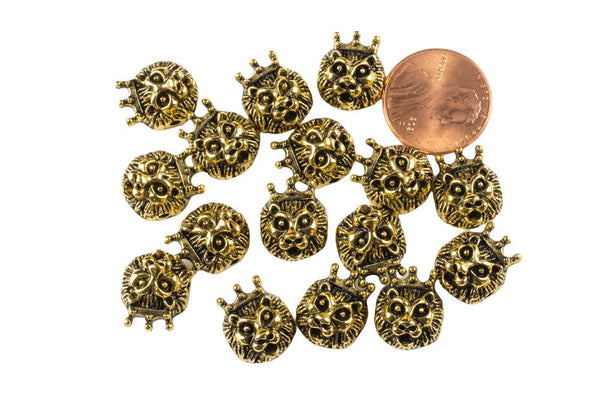 10pc Lion Head with Crown Crowned Lion Head 11*13mm Bead Pewter - Gold, Rose Gold, Silver, Gunmetal