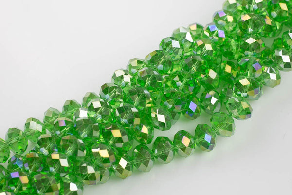 12mm Crystal Rondelle -2 or 5 or 10 STRANDS- Peridot AB