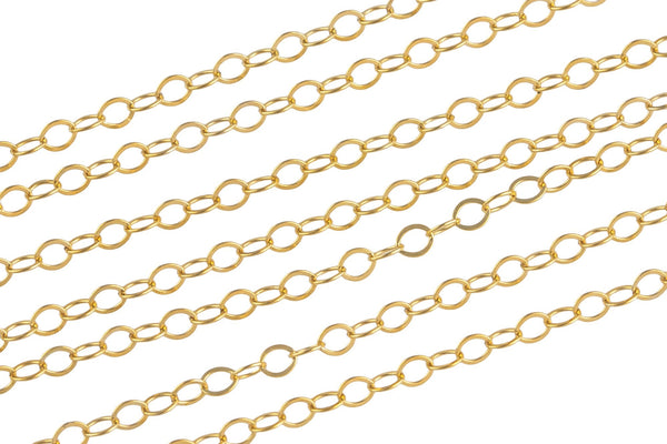 1.3mm -1.5mm Gold-filled Chain by the foot or 10 feet-- Flat Chain Permanent Jewelry Chain