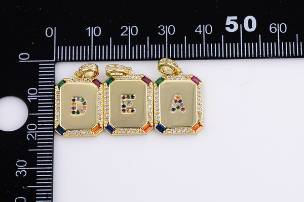 14k Gold Plated Initial Tag Letter Charm CZ Cubic A - Z Alphabet Letter Drop Charm Pendant Personalized Charm for Necklace Jewelry Making