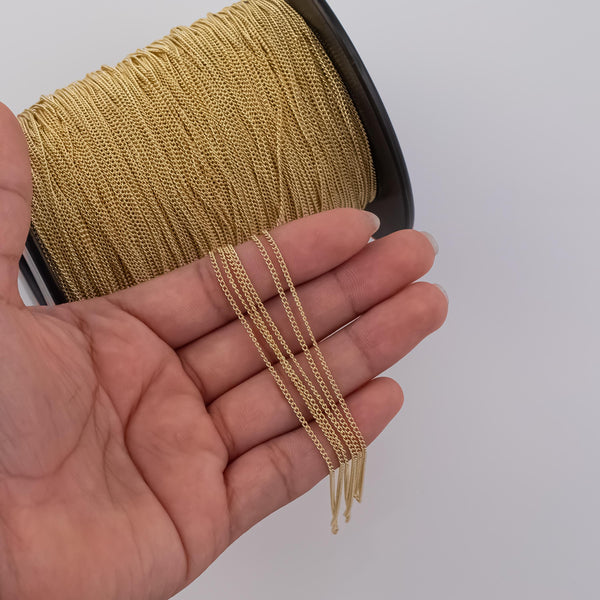 1.5mm Cuban Curb Chain Ion Plated Brass Chain - Tarnish Resistant Wholesale 1 yard per order