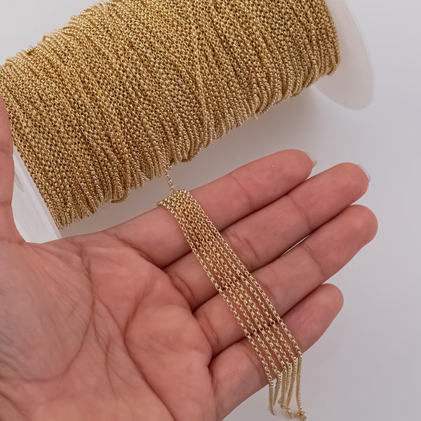1.5mm Rolo Chain Ion Plated Brass Chain - Tarnish Resistant Wholesale 1 yard per order