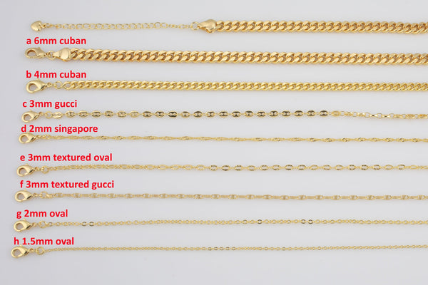 16" 14k Gold Anti-Tarnish Gold Necklace Flat Cuban Curb Singapore Chain Chains Finished necklace chain with extender ready to wear