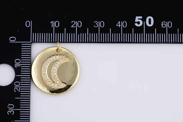 2 pcs 14k gold Moon Pendant, Jewelry Cubic zirconia Star Medallion - 22mm