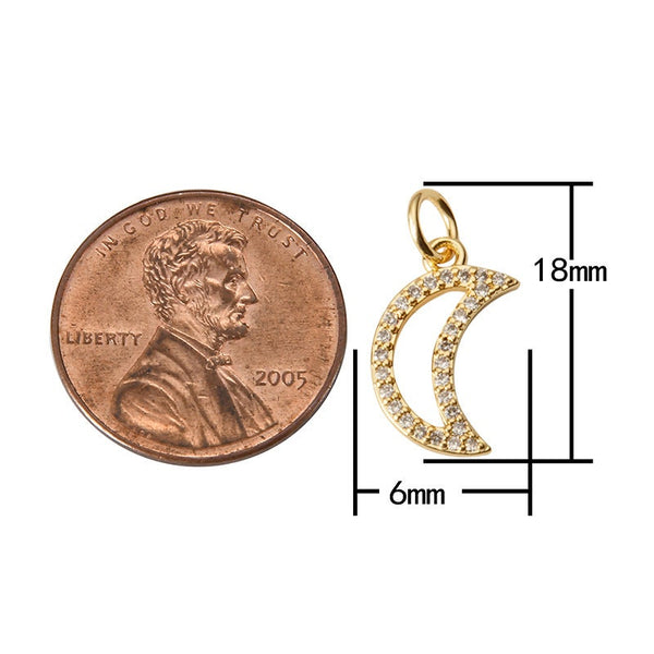 2 pcs 18K Gold Dainty Moon Star Celestial Charm with Micro Pave Cubic Zirconia CZ Stone- 2 pieces per order-10x18mm