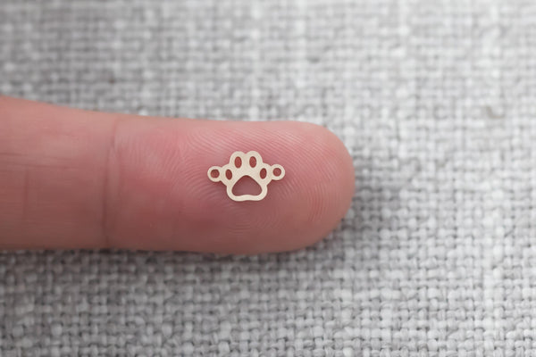 2 pcs Dog Paw Connector 14K Gold Filled Sterling Silver Paw Print Connectors Dog Paw Link for Bracelet or Necklace Permanent Jewelry Supply
