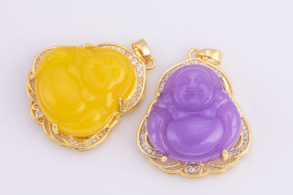 2 pcs Micro Pave Buddha 24k Gold Pendant Gold Buddha Charm for Laughing Buddha for Religious Jewelry Making Supply Trend-27x30mm