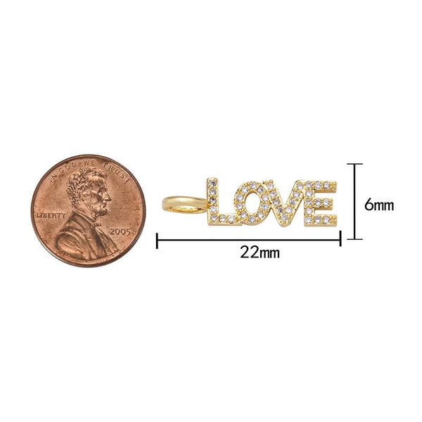 2pc 18k Gold Micro Pave Love Word Charm Rectangle in Drop Pendant for Necklace Earring Component-6x22mm- Large Bail
