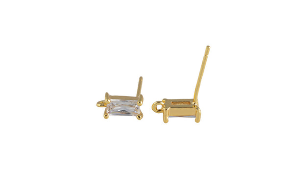 2pc 18K Gold Rectangular Stud CZ Earrings- 2PC per order - 4xmm