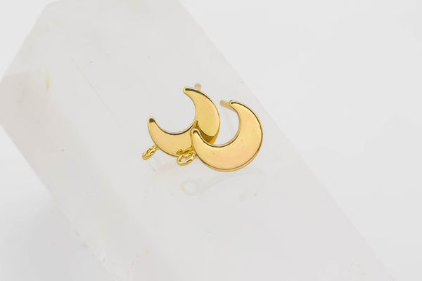 2pc 18kt Gold Moon Stud with open hoop in back- 2 pcs per order- 8x11mm