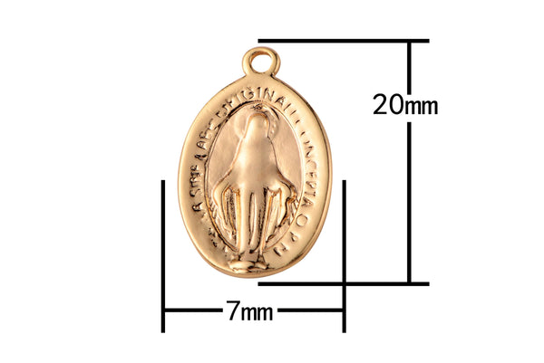 4 pcs 13x20mm 18K Gold Miraculous Medal, Gold Pendant Virgin Mary, Religious Medallion Charm, Spiritual Jewelry, Religious Gift