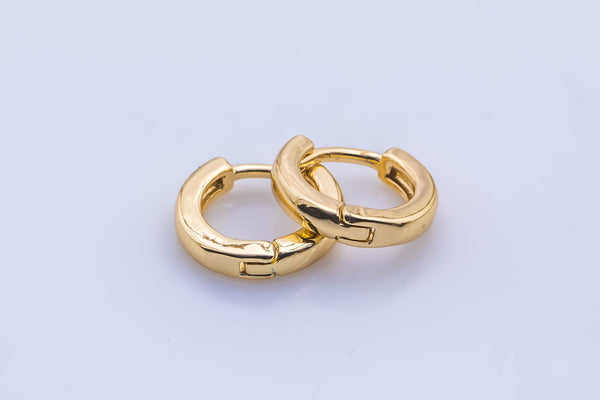 4 pcs 14kt Gold Filled One Touch Lever Flat Rounded Hoop Simple round hoop earring, 10mm and 12mm Huggie Earring Gift for Minimalist Huggies