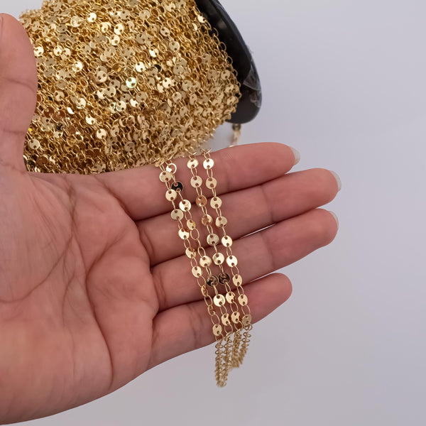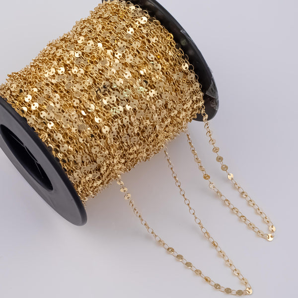 4mm Sequin Disc Chain Ion Plated Brass Chain - Tarnish Resistant Wholesale 1 yard per order