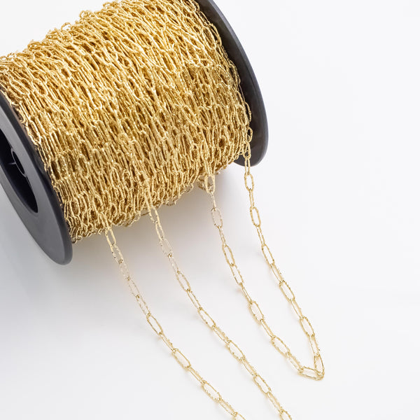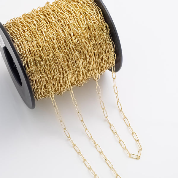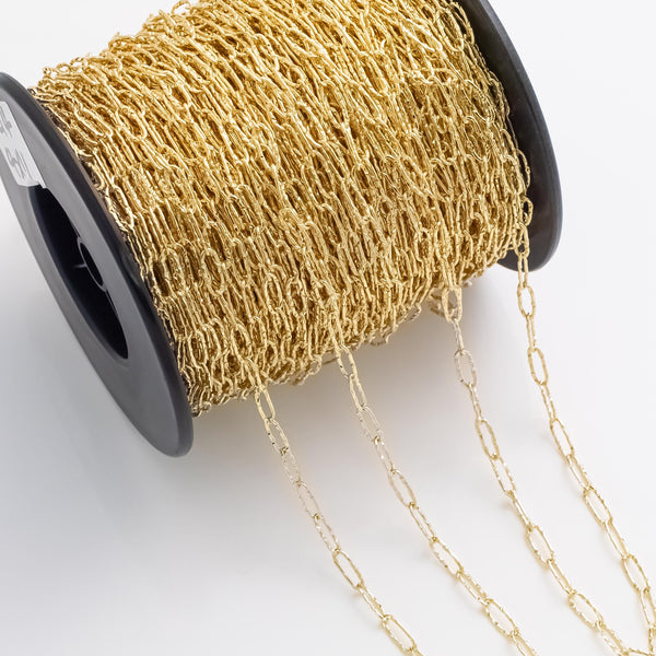 4x11mm Hammered Paperclip Chain Plated Brass Chain - Tarnish Resistant Wholesale 1 yard per order