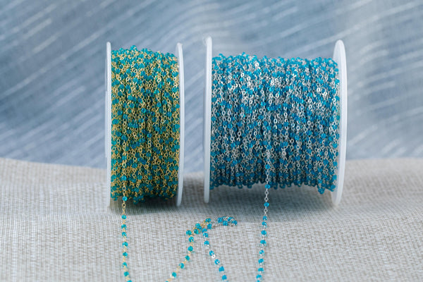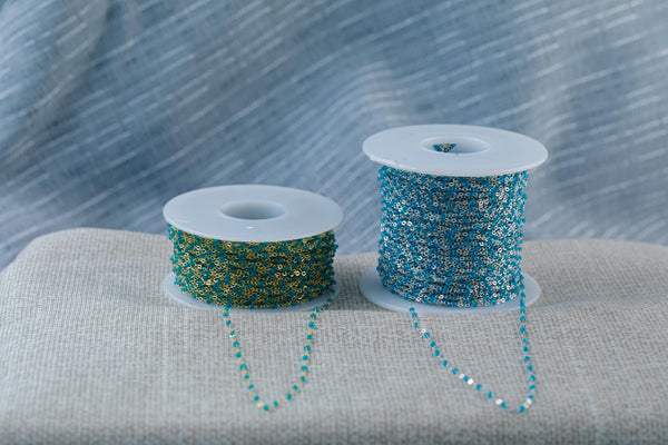 Aquamarine Blue- 1.5mm Gold-filled Or Sterling Silver Multi Enamel Chain by the foot or 50 feet-- Permanent Jewelry Chain-