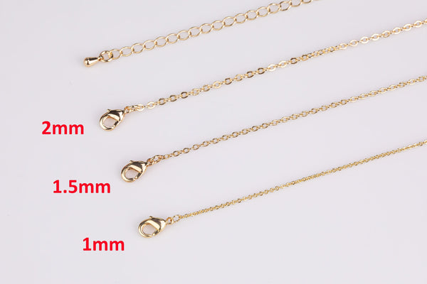 Dainty 14k Gold Necklace Chains for Layering - 1mm Oval Chain 16" 18" 20" with extender Tarnish Resistant