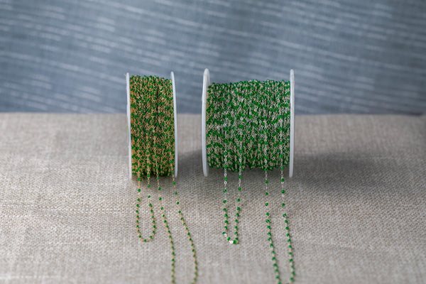 Emerald Green- 1.5mm Gold-filled Or Sterling Silver Multi Enamel Chain by the foot or 50 feet-- Permanent Jewelry Chain-