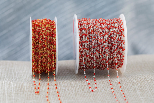 Garnet Red- 1.5mm Gold-filled Or Sterling Silver Multi Enamel Chain by the foot or 50 feet-- Permanent Jewelry Chain-