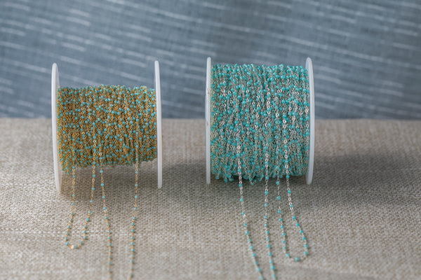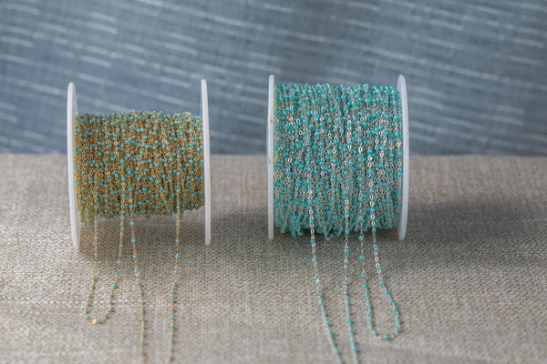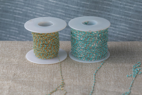 Light Aqua Teal Blue Turquoise - 1.5mm Gold-filled Or Sterling Silver Multi Enamel Chain by the foot or 50 feet-- Permanent Jewelry Chain-