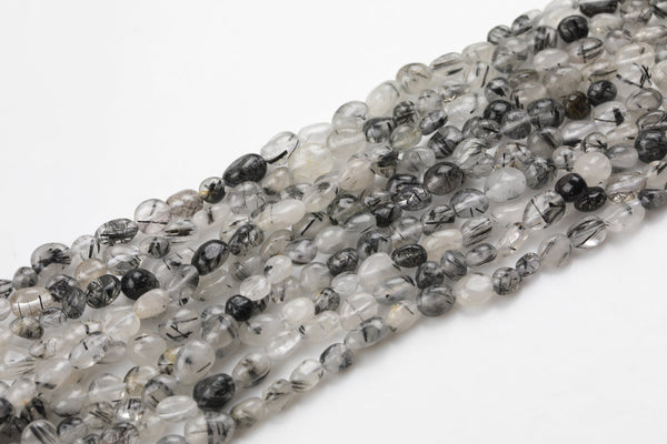 Natural Black Tourmalinated Quartz Nugget Beads - Around 5x8mm in dimensions -16 Inch strand - Wholesale pricing Gemstone Beads