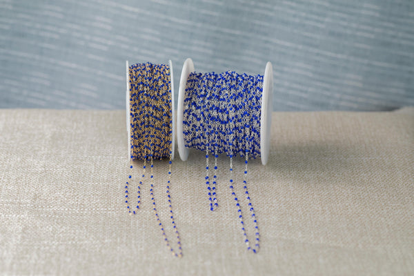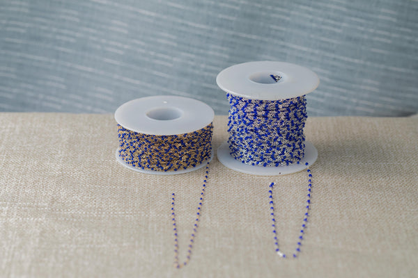 Sapphire Navy Blue- 1.5mm Gold-filled Or Sterling Silver Multi Enamel Chain by the foot or 50 feet-- Permanent Jewelry Chain-