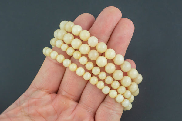 Yellow Jade Bracelet Round Size 6mm and 8mm Handmade In USA Natural Gemstone Crystal Bracelets Handmade Jewelry - approx. 7"